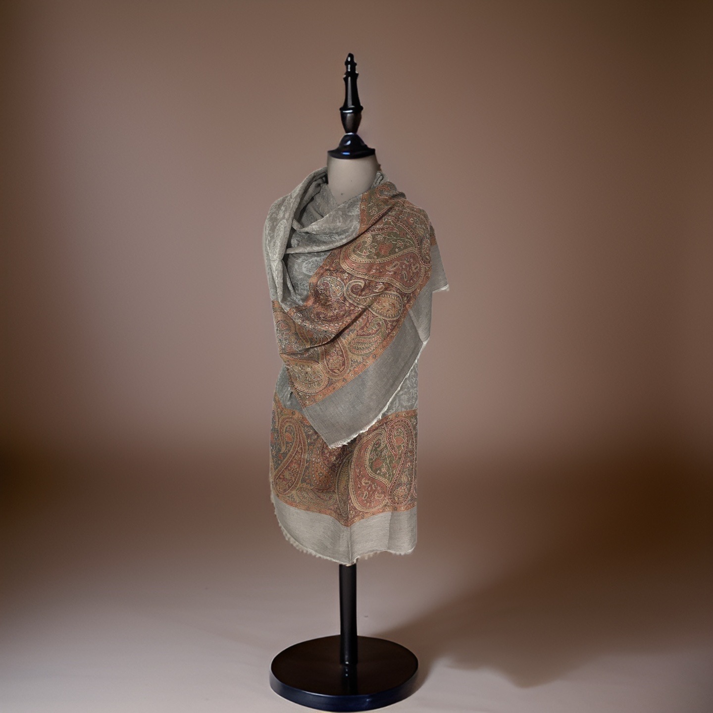 Wrap yourself in the timeless elegance of this Fine Wool Stole, adorned with a delicate Paisley design border. Crafted with luxurious soft wool, this stole brings warmth and sophistication to any ensemble. Whether you wear it casually or formally, the intricate Paisley design adds a touch of classic charm, making it a versatile accessory for every occasion.